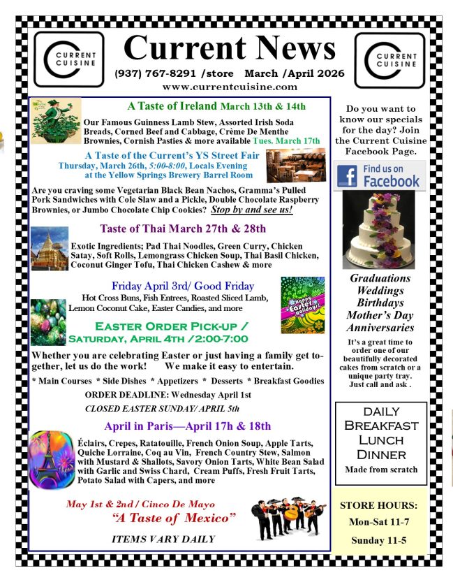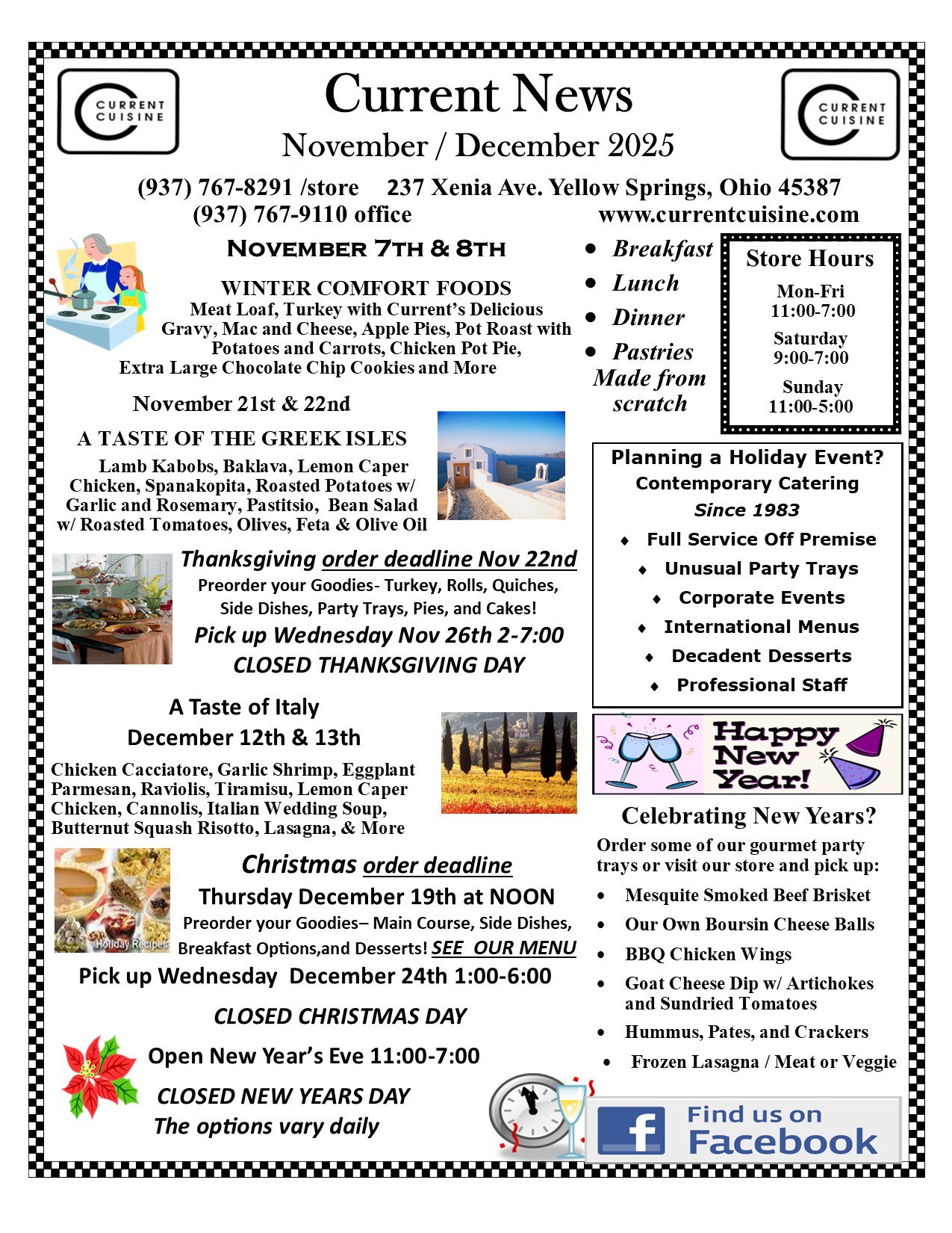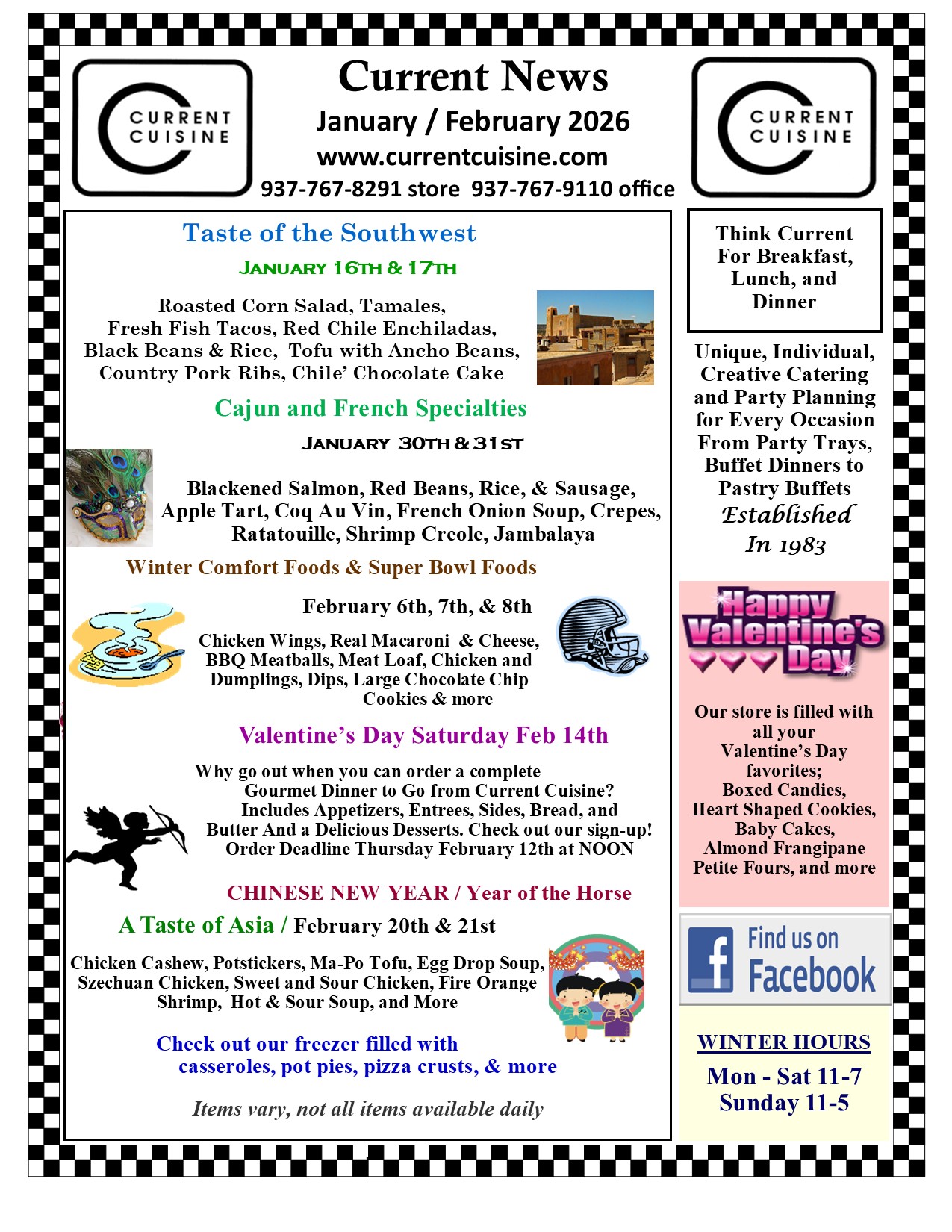 Check-out our Current newsletter to find out about our latest delicious menu items.